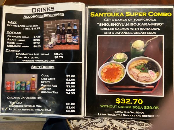 ※私と相方がオーダーしたのがコチラ。味噌ラーメンと鮭丼セット C$22.45と、トッピングのコーン C$2.90。