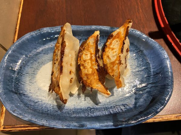※2人でシェアしようと、ギョーザ C$9.25も注文。本当は5ピースです!(写真を撮る前に、2人ともパクっとしちゃいました💦)